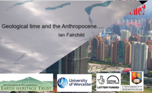 This presentation is in two parts. Geological Time and the Anthropocene examines the way in which geologists establish stratigraphic golden spikes that represent particular instants in geological history, using examples throughout the record. The particular issues from the idea of an Anthropocene Epoch are then examined. A key idea is that the Earth System is now operating outside its range of the Holocene Epoch, representing the time since the Ice Age. In the second part, we move to a scripted dialogue between the speaker and members of the audience called Introducing the Anthropocene in which different voices question the ideas surrounding the formal establishment of an Anthropocene Epoch