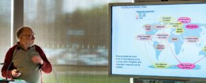 Ian Fairchild started his career as a geologist with specialism in sedimentology, but diversified into fields such as glacial geomorphology, karst science and environmental chemistry including contemporary environmental and climatic change. He is currently a member of the Anthropocene Working Group which is developing a proposal for the formal establishment of an Anthropocene Epoch as the youngest element in the geological column. Ian is Emeritus Professor at the University of Birmingham and Chair of the Herefordshire and Worcestershire Earth Heritage Trust.